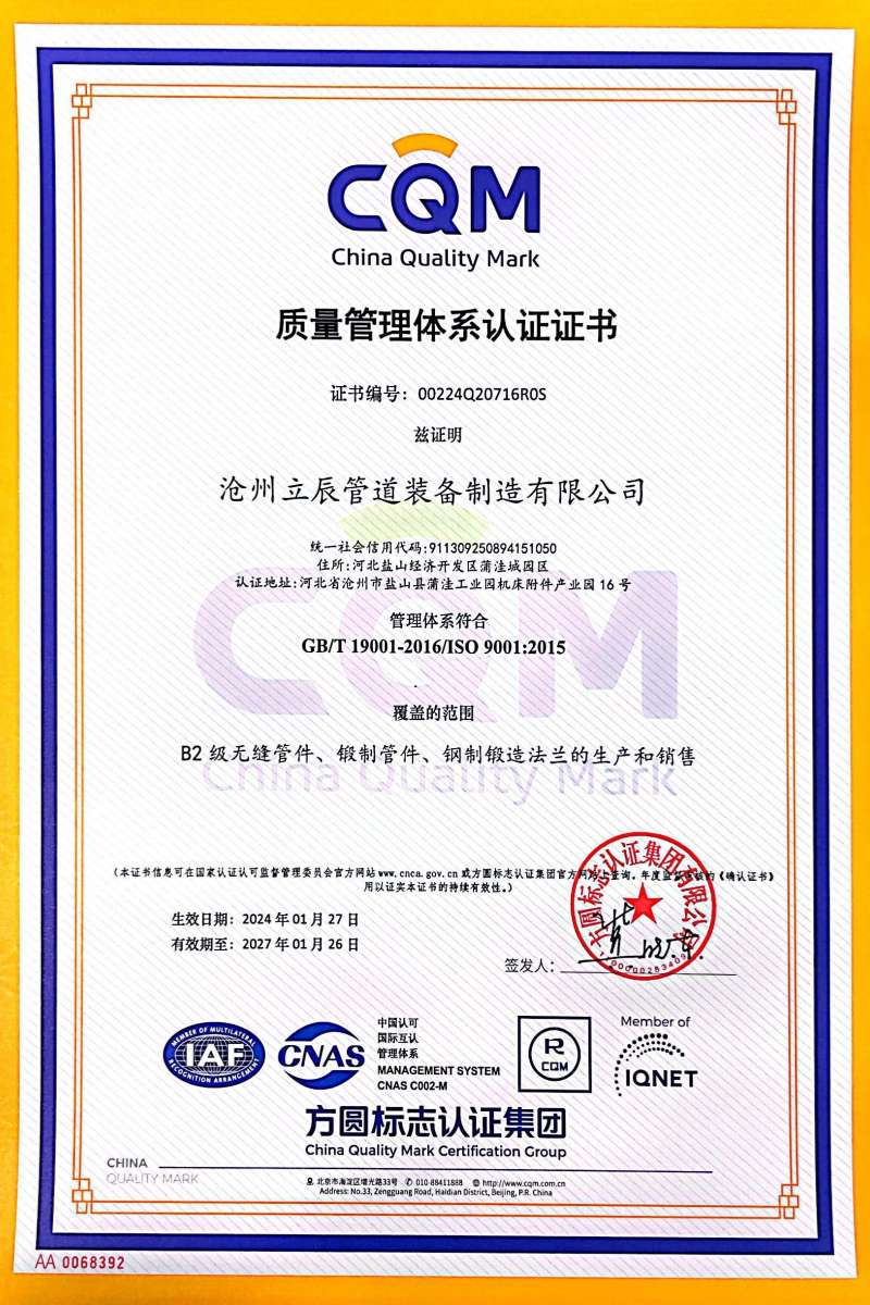 作為一家集研發(fā)、制造、銷售于一體的管件解決方案供應(yīng)商,滄州立辰管道始終秉持“匠心制造,品質(zhì)為先”的理念。公司引進(jìn)自動化生產(chǎn)線及數(shù)字化檢測設(shè)備,并組建專業(yè)技術(shù)團(tuán)隊,在耐高壓、耐腐蝕等特種管件領(lǐng)域形成獨特優(yōu)勢。此次雙認(rèn)證的通過,不僅是對現(xiàn)有實力的肯定,更為企業(yè)拓展石油、天然氣、市政工程等高端市場提供了資質(zhì)保障。